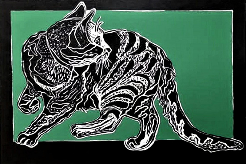 Cat on the block (in green)